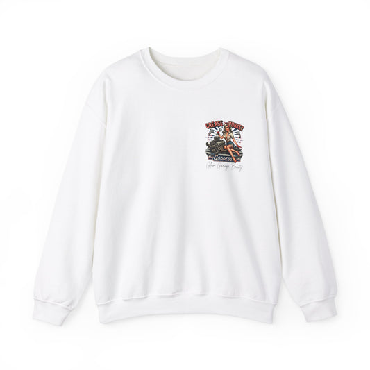 Grease Monkey Goddess Crewneck Sweatshirt - Vintage Automotive Apparel
